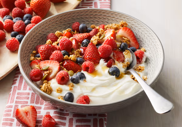 Greek yogurt supplies protein, while granola offers a mix of fast- and slow-digesting carbs.