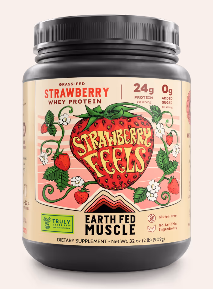 I typically recommend whole foods over protein powder, however you can’t beat the convenience of a protein shake. If you go this route, it’s important to select a high quality protein powder. I always struggled to find a protein powder that wasn’t full of ingredients I couldn’t pronounce and artificial flavors and sweeteners. I also struggled to find a protein powder that was easily digestible. I have recently discovered Earth Fed Muscle protein. Its main ingredient is grass fed whey protein and has one of the shortest lists of ingredients I have come across. Bonus points, it digests well! They have a range of flavors including vanilla, strawberry and chocolate peanut butter. The strawberry tasted like a fresh fruit smoothie, which makes sense since it is flavored with freeze dried strawberry powder.