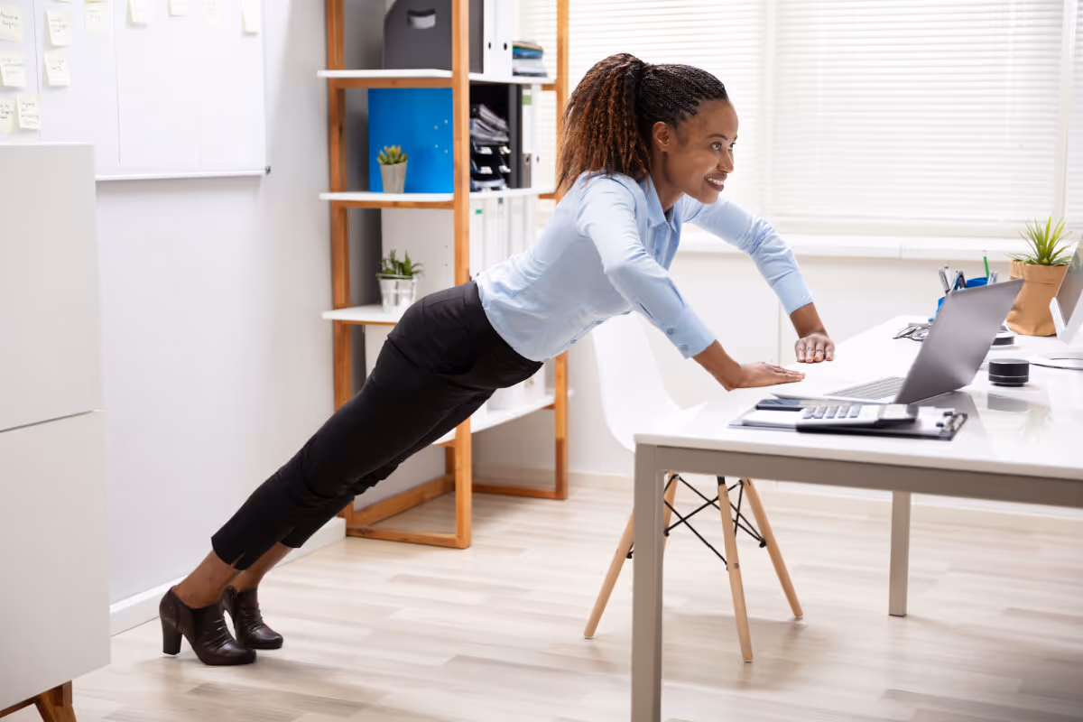 If you sit for long periods of time, take a minute every hour to do simple movements like seated hip, neck or upper back mobility, or stand up to do a quick set of lunges or pushups. This can help prevent the stiffness that often comes from prolonged sitting without taking a ton of time away from your job!