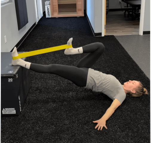 - Straight leg bridge + hip flexion - alternating 8-10 reps each side